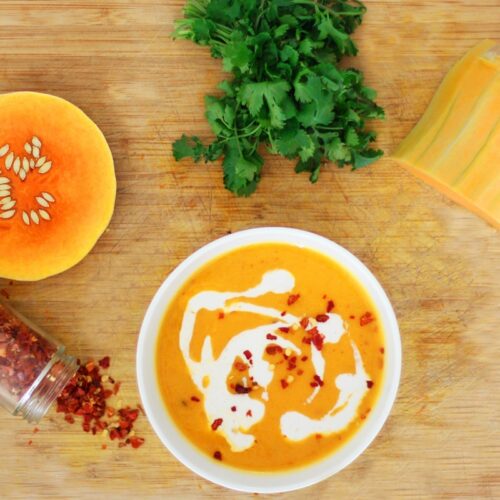 Kaphas/Spring body types should make the carrot soup as butternut squash is too sweet for them. Butternut squash and carrots are both good for the Pittas/Summer and Vatas/Winter body types. The other point of focus is which oil you choose to use, it depends on your dosha. Lastly, if your Pitta is aggravated (you’re burning, super inflamed), skip the onion and the ginger which are too warming for Pittas, instead use cinnamon and fresh coriander leaves, more cooling.