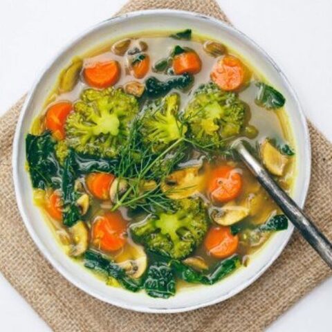 This soup includes the whole array of immune booster vegetables: leafy greens or cruciferous (broccoli, parsley), mushrooms, veggies from the allium family (garlic, scallions), root veggies (carrot, ginger), sea veggies (kombu) and healthy fats (sesame seeds). The soup can also be supplemented with legumes (or whole grains if tolerated).