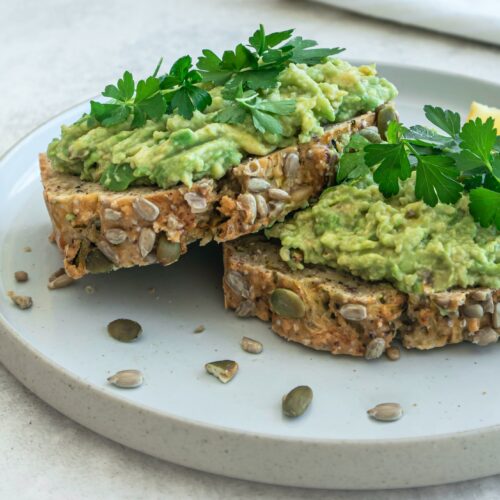 You can then dress up your avocado toast with any vegetables of your choice. Some of my favorites are: sprouts, microgreens, kale, chickpeas, broiled asparagus, sweet potatoes, tomatoes, and cucumber.